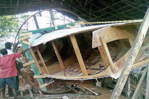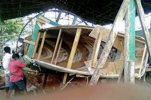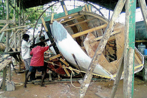 L'après midi et le lendemain se passent à mettre les cinq patins sous le bateau, bien de niveau, et à retirer les anneaux.