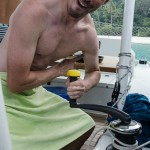 Dernière visite en Malaisie, il est temps de mettre le cap sur Bornéo (toujours la Malaisie, mais un autre monde quand même). Nous profitons de ces 4 jours en marina pour rincer tout le matériel (tache confiée sans honte aux enfants qui ont investis le ponton), regonfler les bouteilles, nettoyer le bateau de fond en comble, réviser les drosses, retendre les trampolines, faire les pleins d’huile, reboucher quelques fuites aux capots, se reposer un peu aussi, enfin tout un tas de petits riens indispensables, puis les dernières courses de frais (on a un trajet de 5 jours à faire), les démarches administratives, le plein de diesel, et hop, en route.