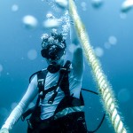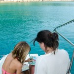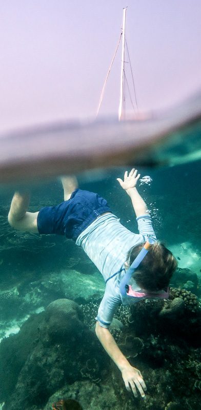 Une fois au large, on coupe un des deux moteurs (pour les longues traversées, il est peu rentable d’avoir les 2 moteurs en route). La vitesse chute alors très fortement. « Mais, elle tourne pas cette hélice ! ». Le moteur, lui, tourne, pas de bruit suspect, mais on n’avance pas… Après vérification sous l’eau, pas de sac en tissu, de cordage, rien, une hélice toute propre, et qui tourne quand le moteur tourne, accélère même. Mais visiblement, elle n’atteint pas sa vitesse normale, puisqu’à fond au moteur, on va à 1 noeud au lieu de 8 !