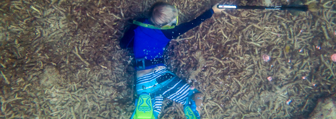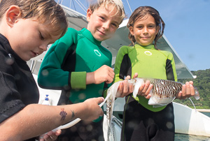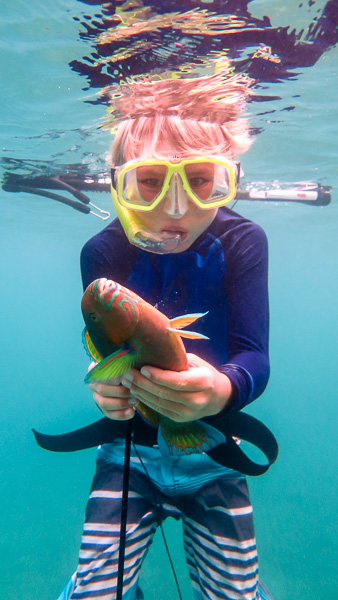 D’ailleurs, en pleine leçon de sport, Timéo s’est amusé a chasser une seiche et un gros perroquet, qui, barbecioutés sans attendre, on fait le régal de nos papilles ce soir…
