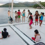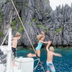 Alors on profite des magnifiques paysages autour d’El Nido, des villages de pêcheurs, ou à peine mouillés, on se retrouve avec 30 (oui, 30) enfants sur le trampoline, pire qu’un cyclone; des poissons, décidemment abondants (encore un gros Whaoo qui s’est laissé attrapé, miam miam).