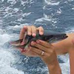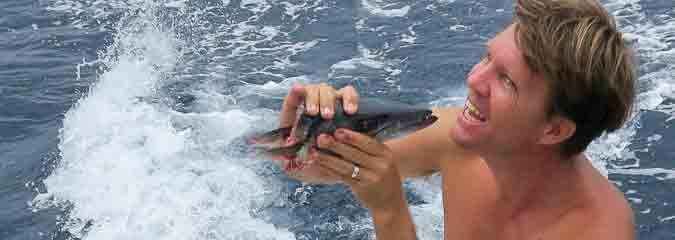 Aujourd’hui, on a péché un baracuda dépressif. Dépressif car assez bête pour se faire prendre une première fois par notre leurre, se libérer miraculeusement une fois sur notre jupe, et rebouffer le même leurre 1 minute plus tard. Celui-ci ne voulait vraiment pas voir Noël 2017. On va tester le baracuda aux marrons, pour voir…